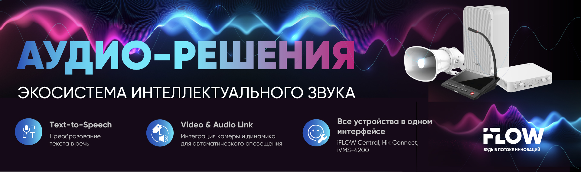 iFLOW предлагает комплексную аудио-экосистему, включающую как простые аналоговые, так и продвинутые сетевые IP-решения, что обеспечивает безопасность и коммуникацию на высоком уровне.