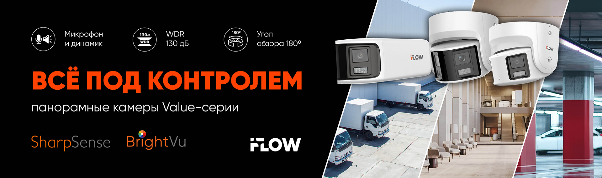 iFLOW предлагает решение данных проблем – панорамные камеры Value-серии. Они обеспечивают угол обзора 180°, формируют цельное изображение без «швов» и артефактов, а также оснащены современными технологиями BrightVu и SharpSense.